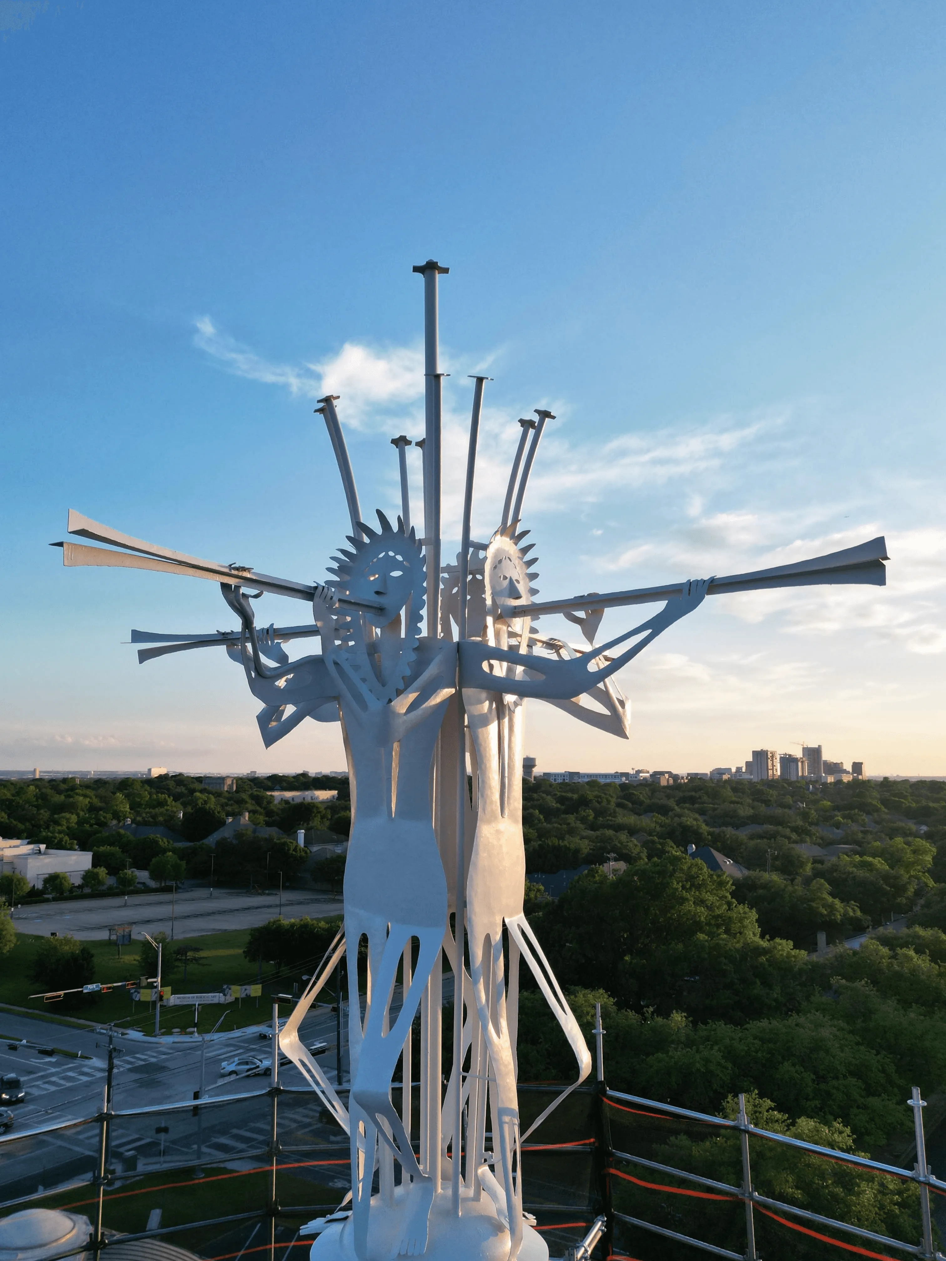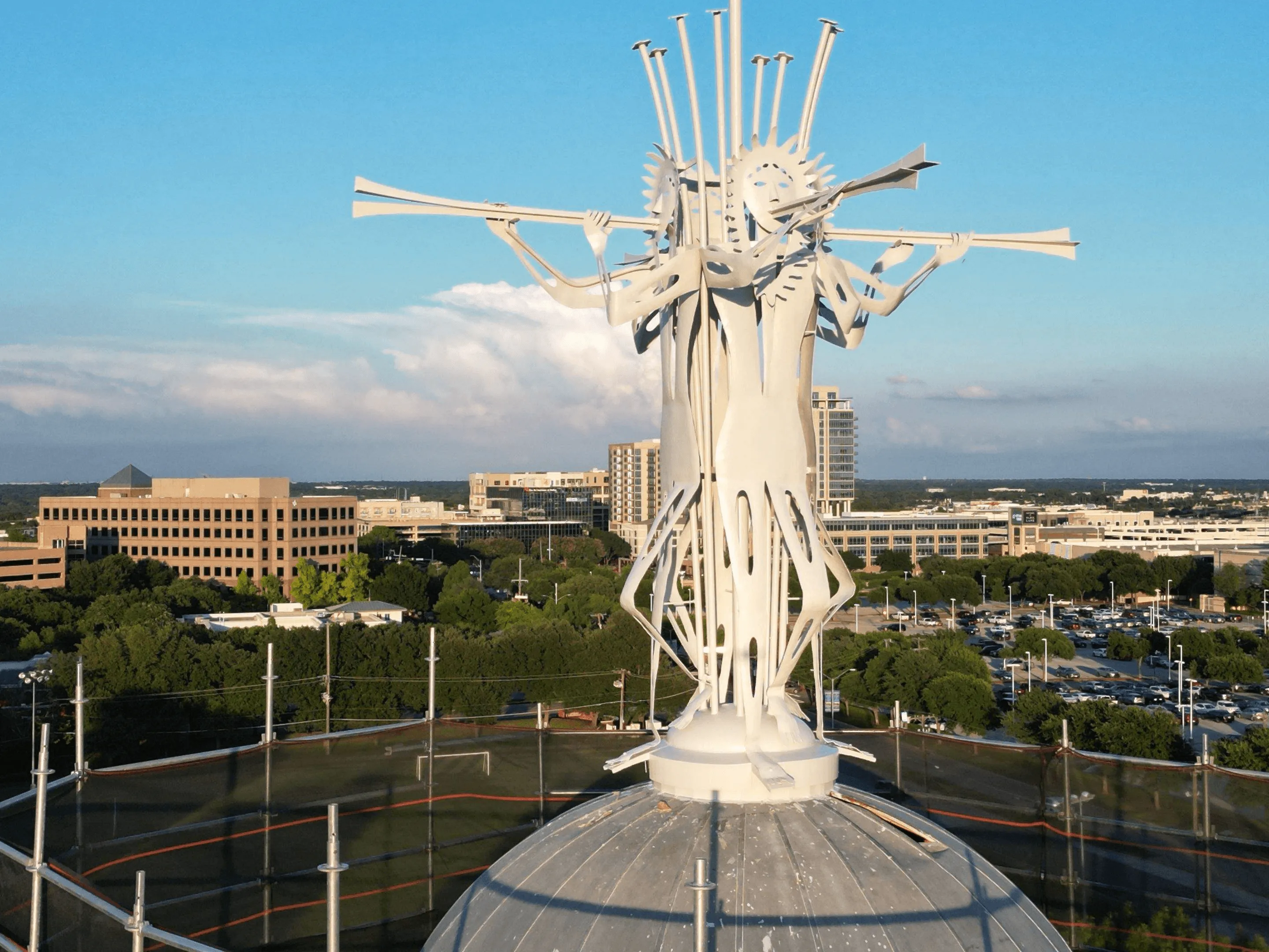 Cleaning and removal of rust from the historic angel sculpture on the dome.
